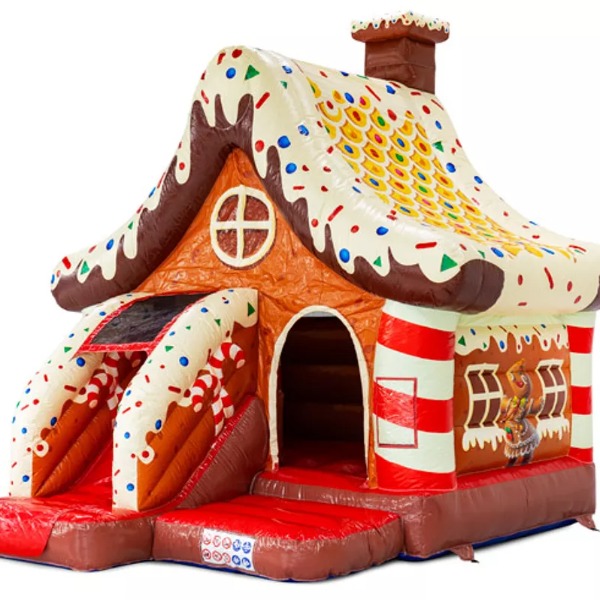 Springkussen Combo Hans & Grietje ( Gingerbread ) met Glijbaan